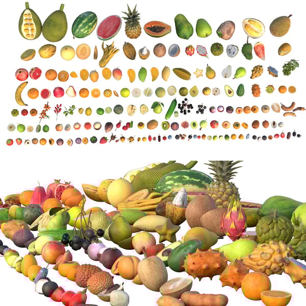 Fruits 3d model collection 100