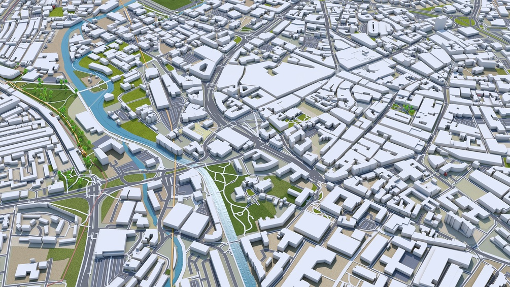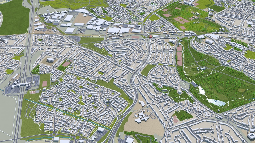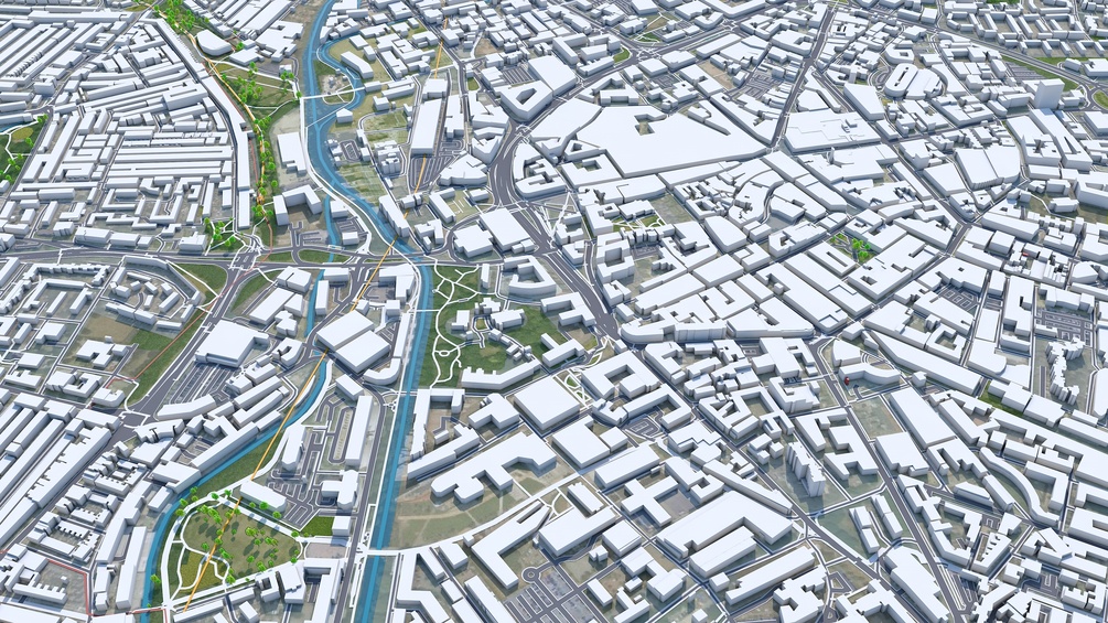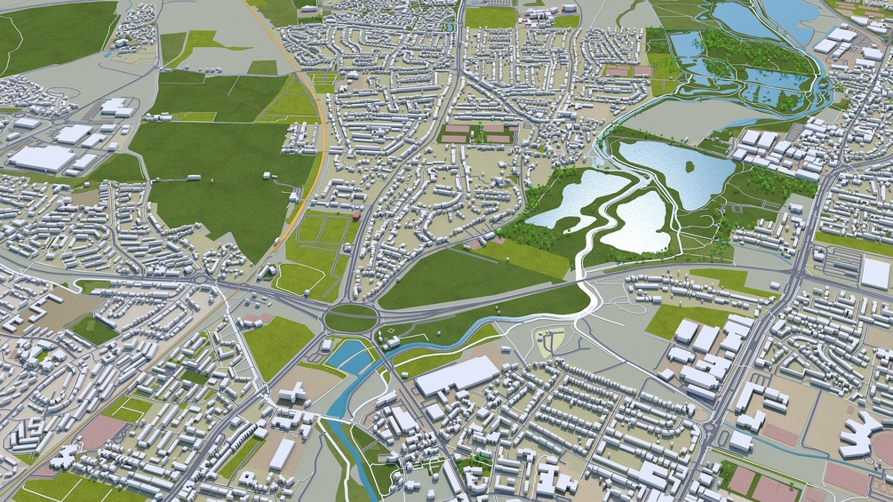 Accurate 3D city model and its surrounding area based on GIS data Year 2022
