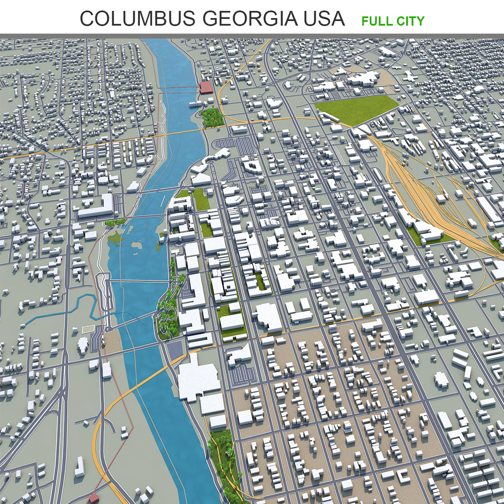 Columbus city Georgia USA 3d model 50km