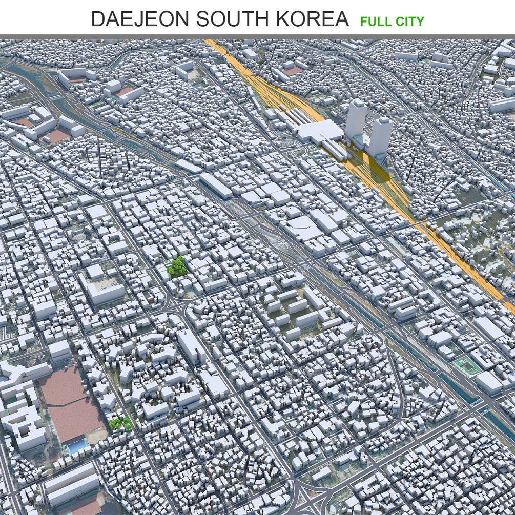 Daejeon City South Korea 3D Model 50km