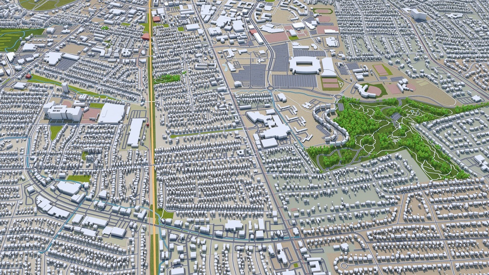 Accurate 3D city model and its surrounding area based on GIS data Year 2022