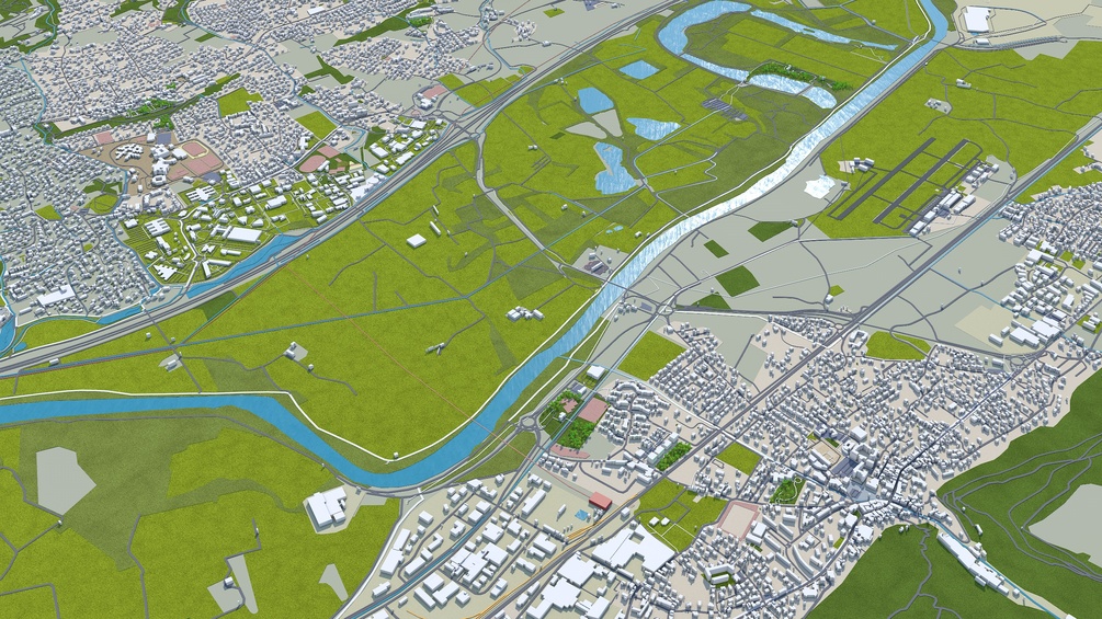 Accurate 3D city model and its surrounding area based on GIS data Year 2023