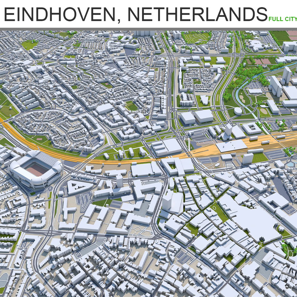 Eindhoven City Netherlands 3D Model 30Km