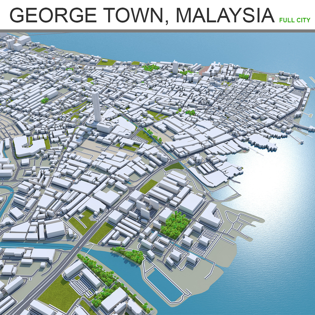 George Town, Penang Island, Malaysia 3d model 30km