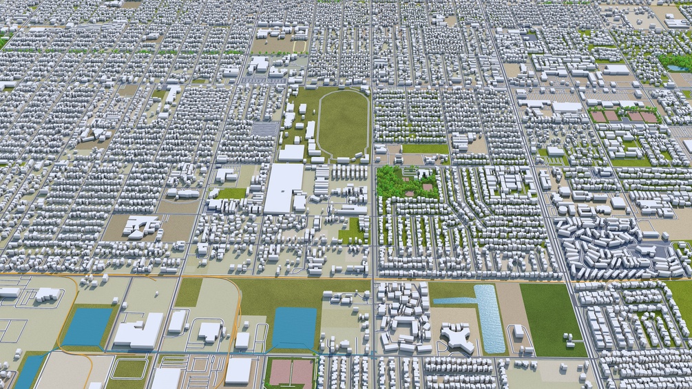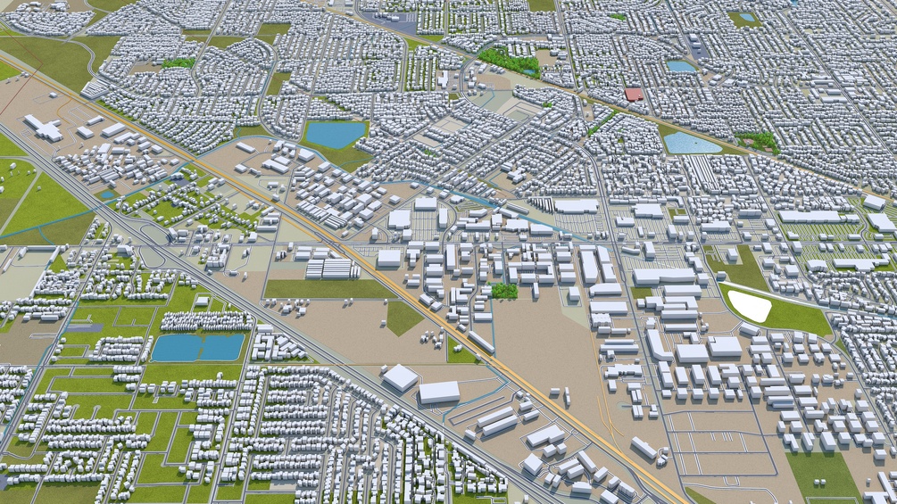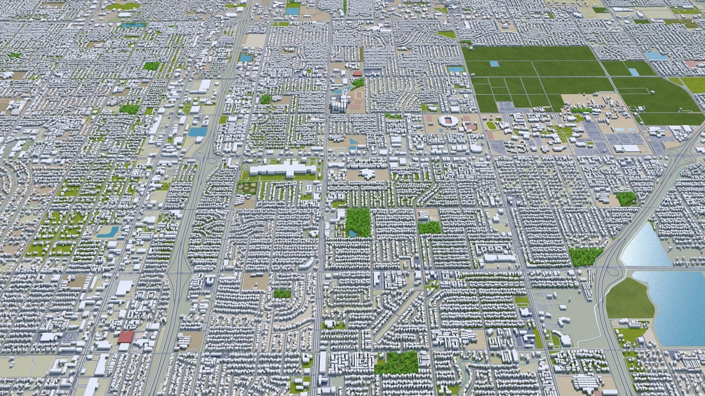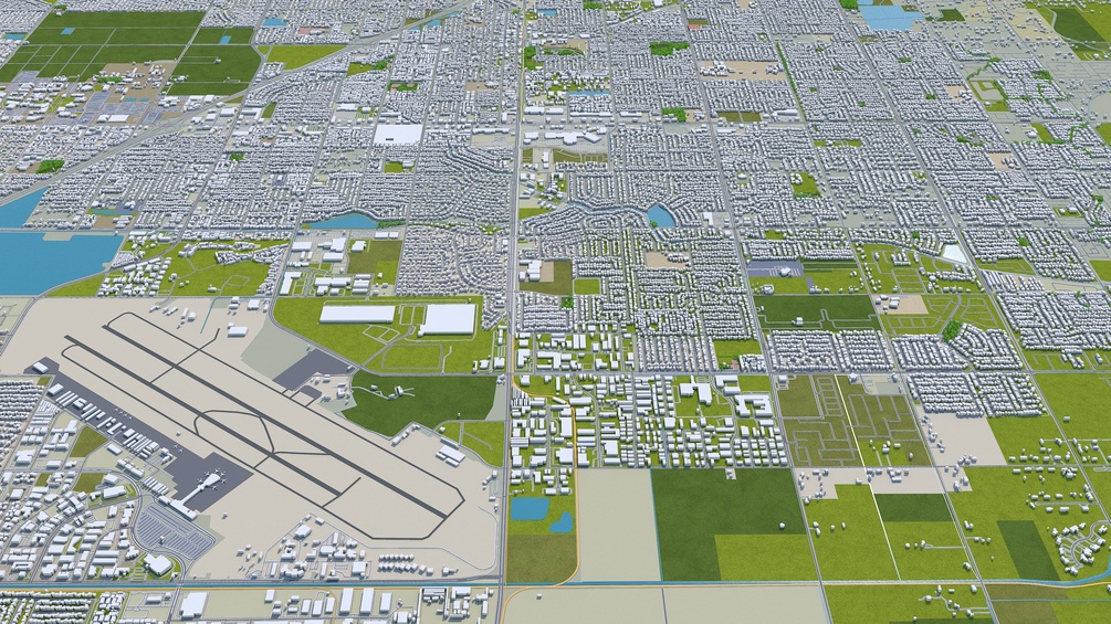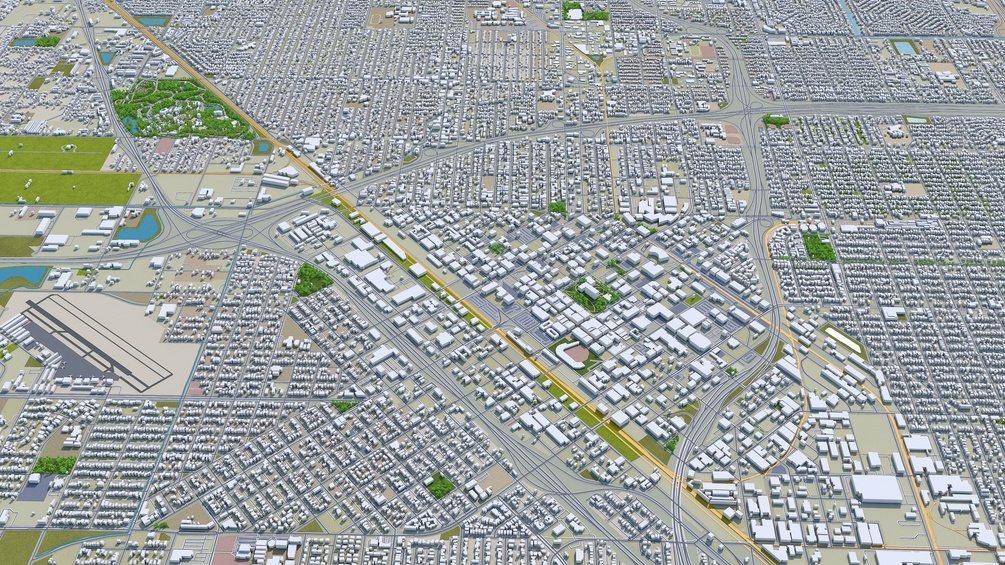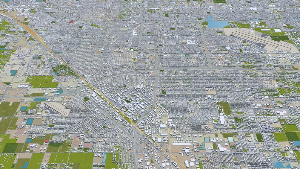 Fresno City California 3d model 50km