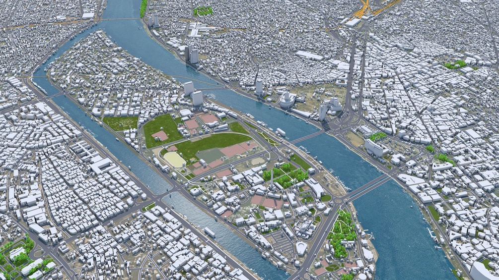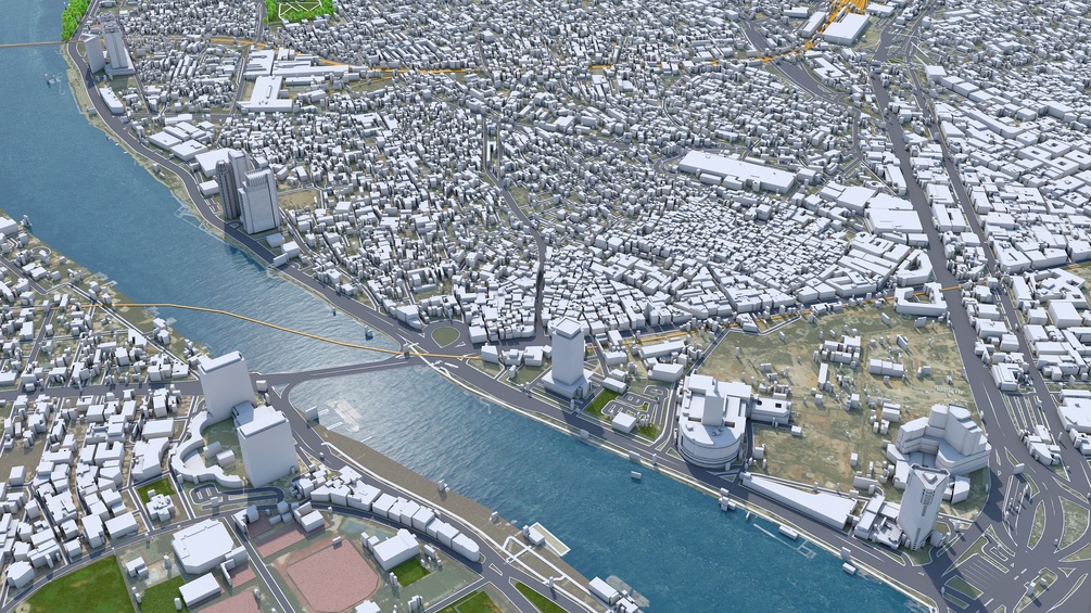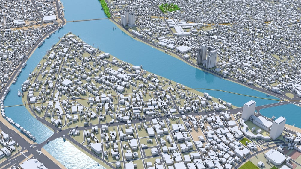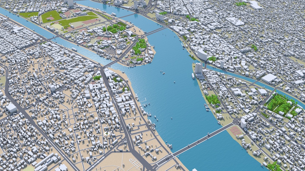 Accurate 3D city model and its surrounding area based on GIS data Year 2022