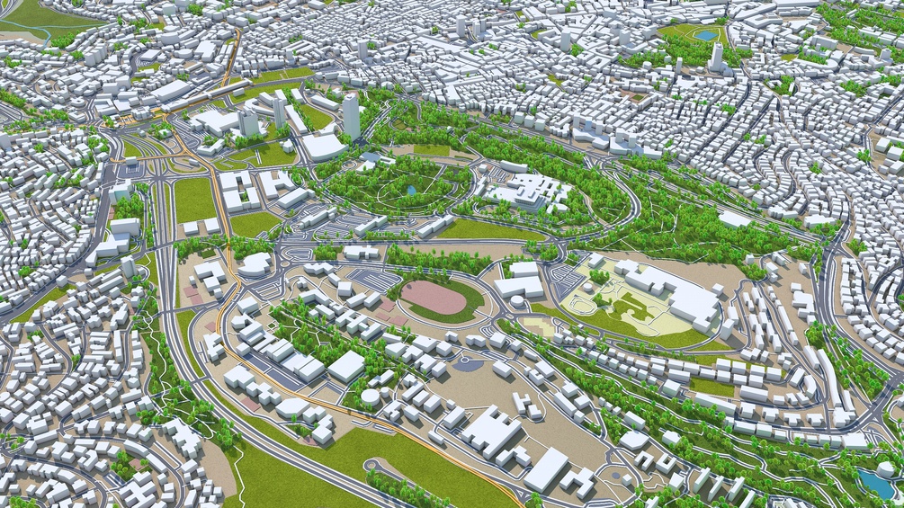 Accurate 3D city model and its surrounding area based on GIS data Year 2023