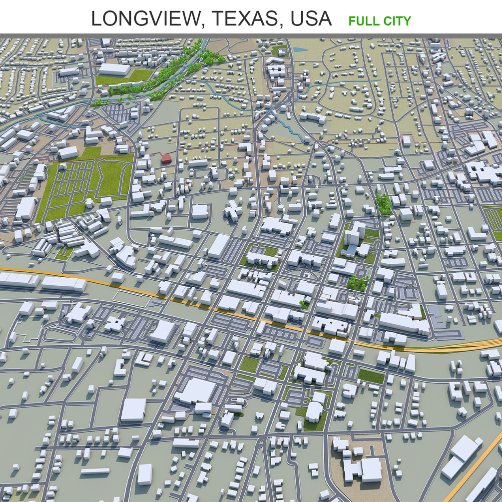 Longview city Texas USA 3d model 30km