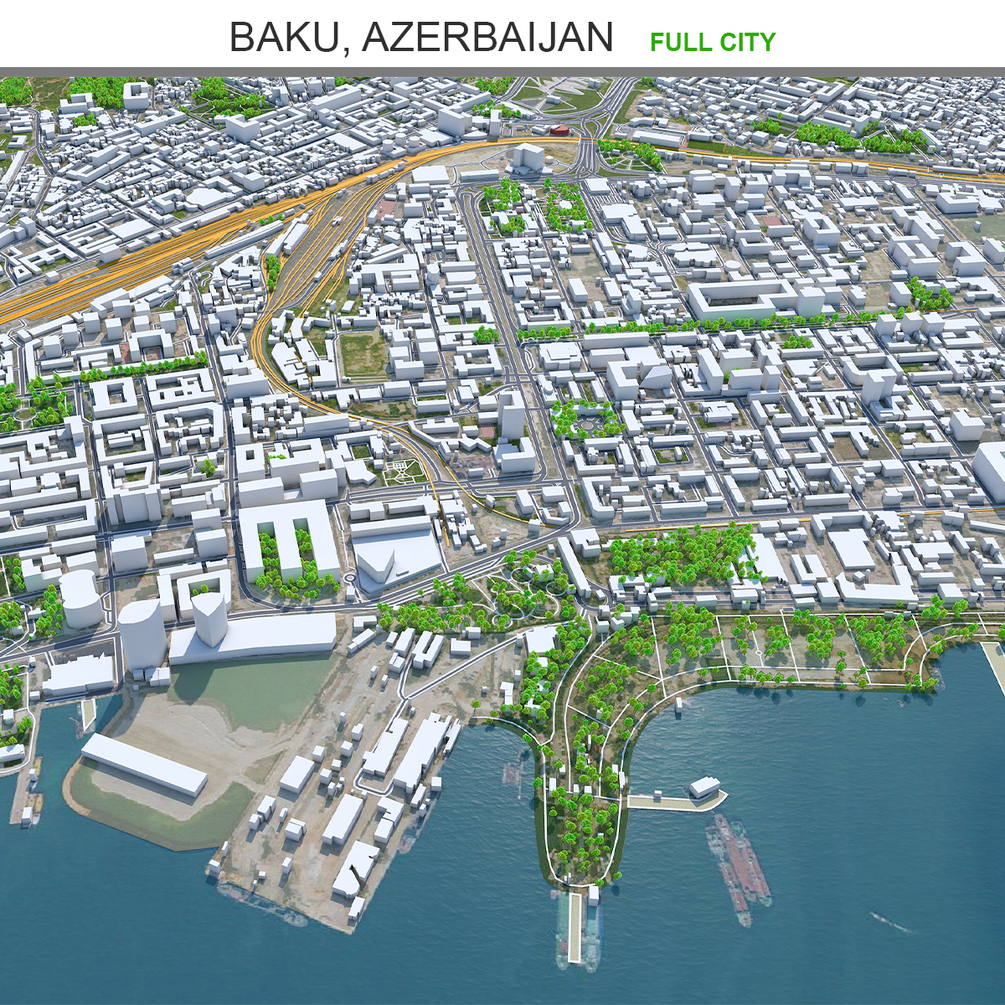 Baku city Azerbaijan 3D Model 50km