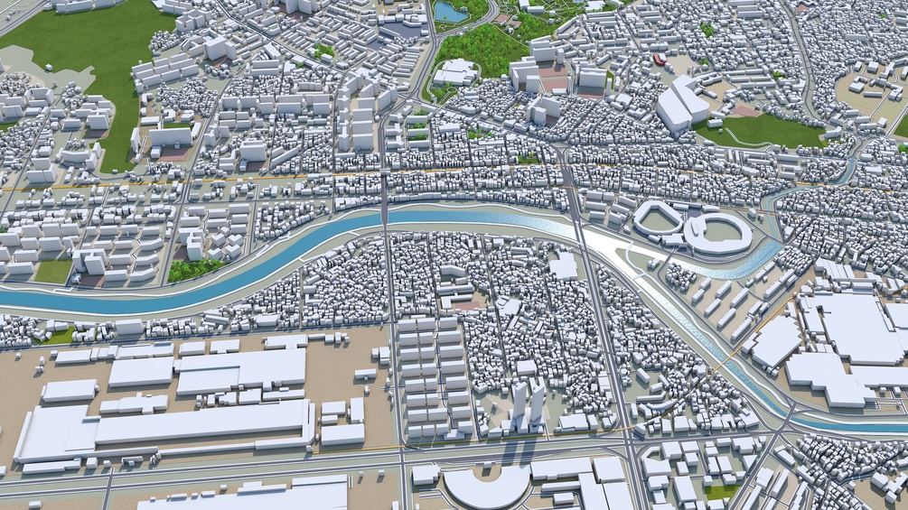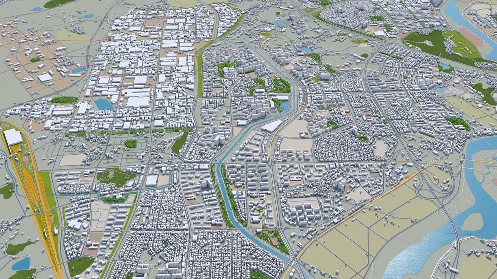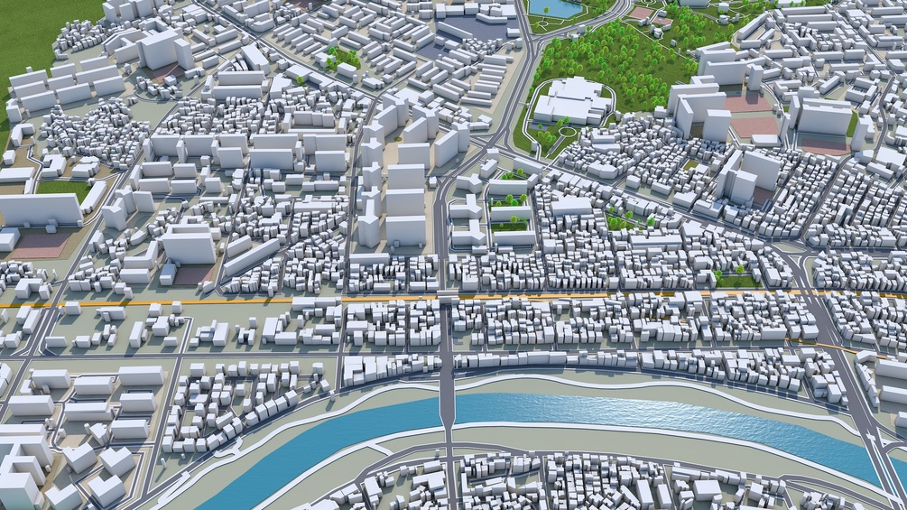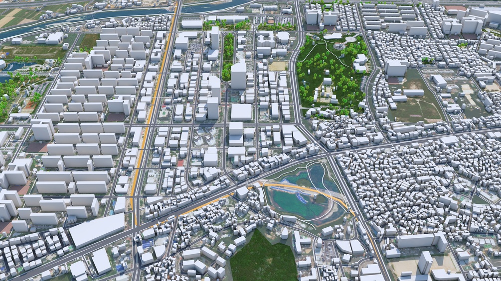 Accurate 3D city model and its surrounding area based on GIS data Year 2022