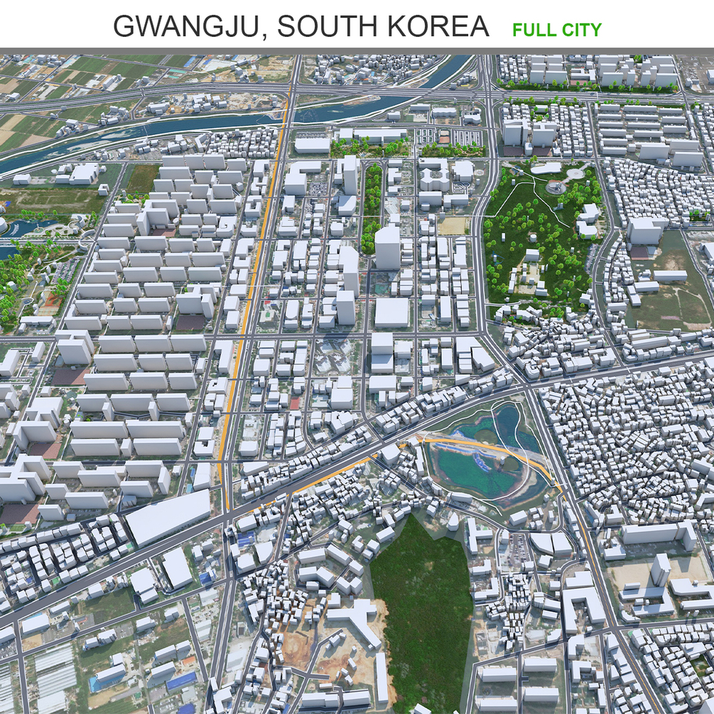 Gwangju city South Korea 3d model 45km