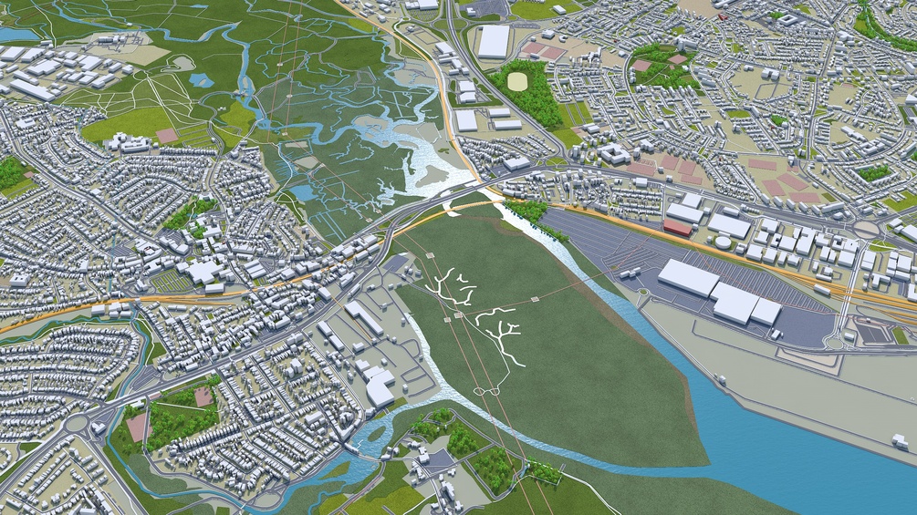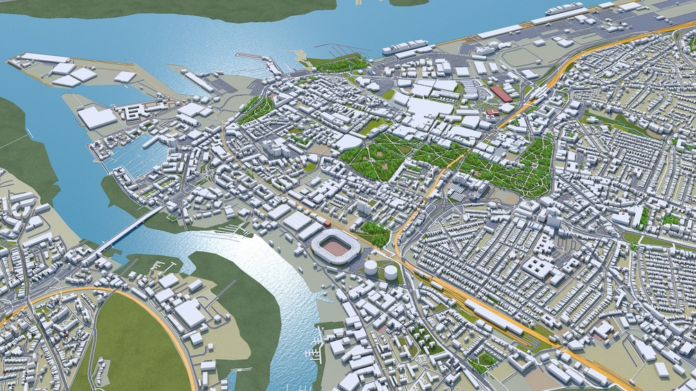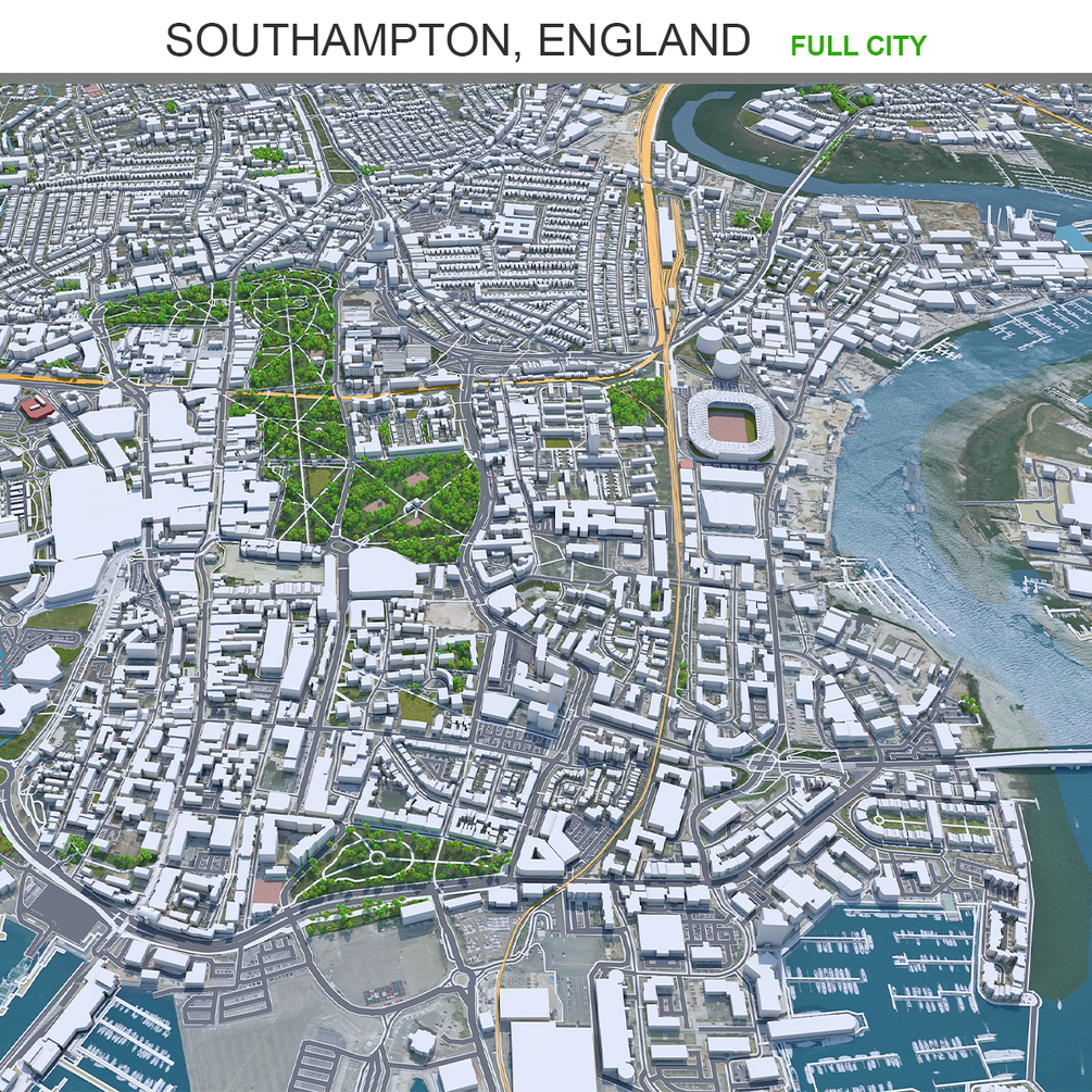 Southampton city England 3d model 30km