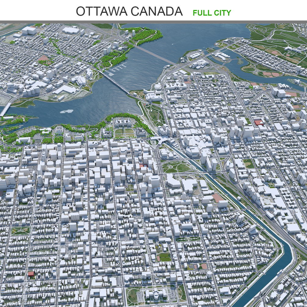Ottawa City Canada 3D Model 100km
