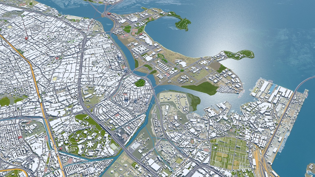 Accurate 3D city model and its surrounding area based on GIS data Year 2022