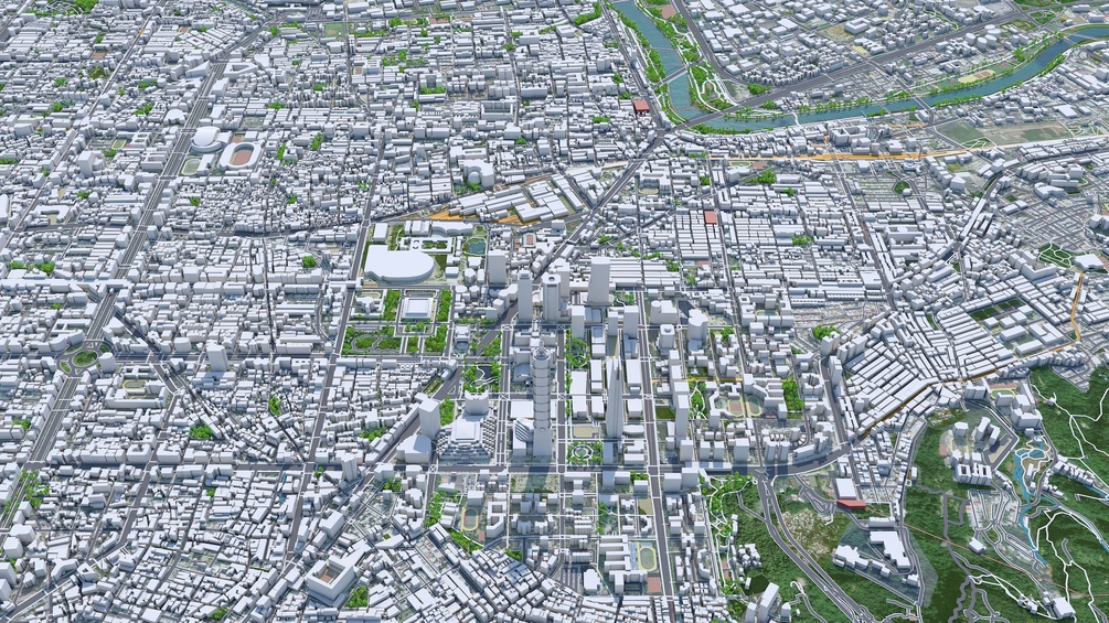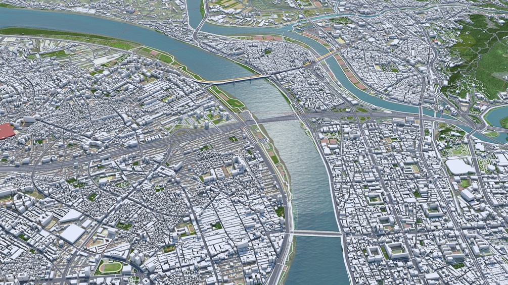 Accurate 3D city model and its surrounding area based on GIS data Year 2022
