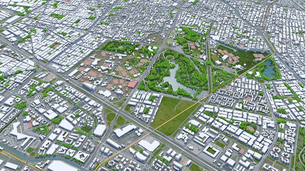 Accurate 3D city model and its surrounding area based on GIS data Year 2022