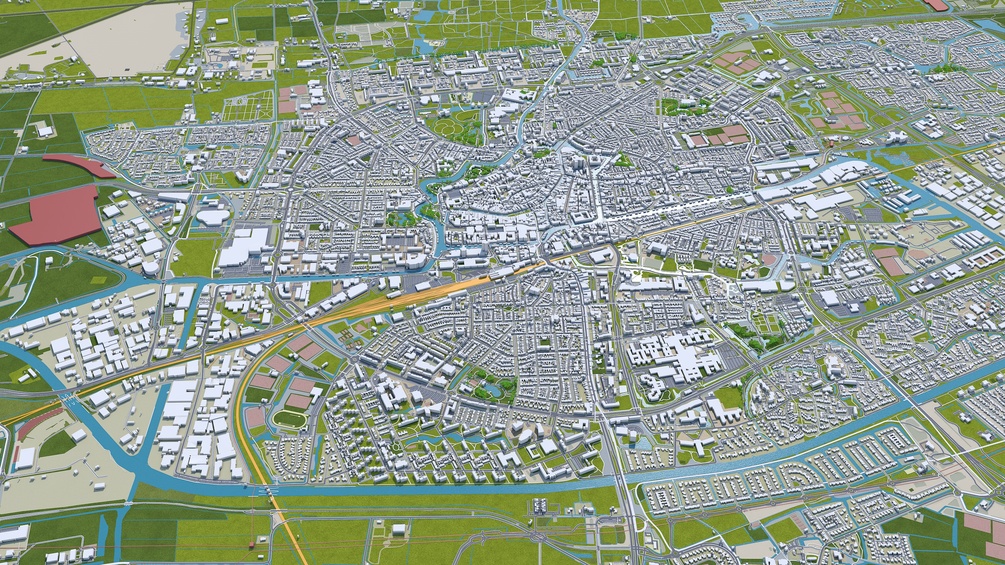 Leeuwarden city Netherlands 3d model 40km