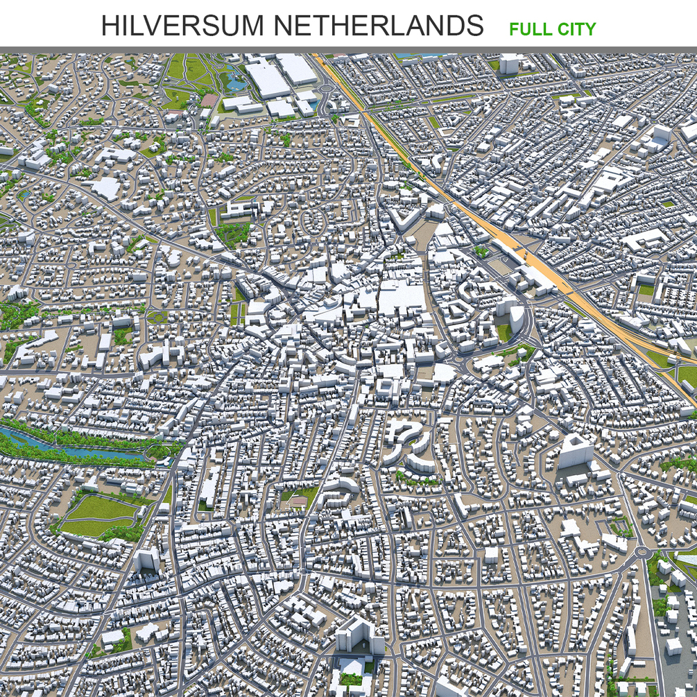 Hilversum city Netherlands 3d model 20km