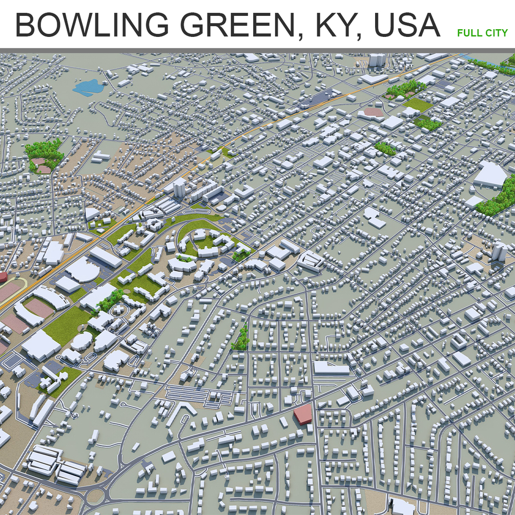 Bowling Green City Kentucky USA 3D Model 40 km