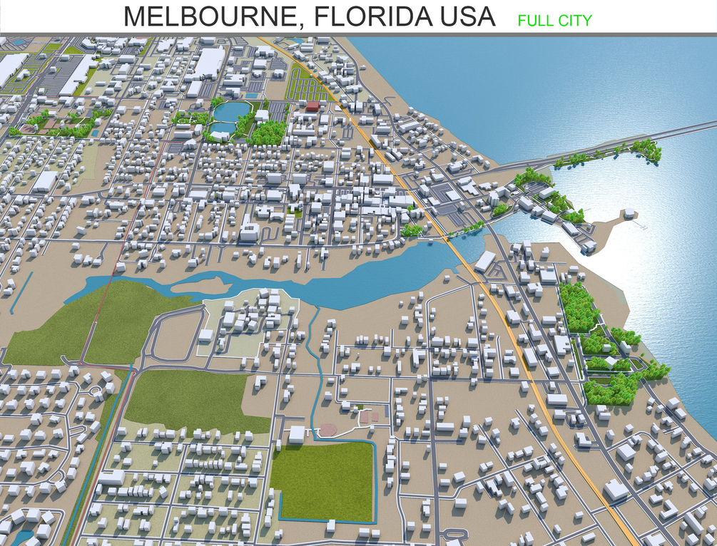 Melbourne city Florida USA 3d model 40 km