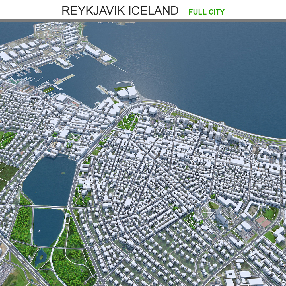 Reykjavik city Iceland 3d model 50km