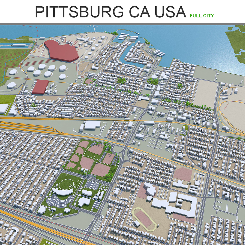 Pittsburg City California 3D Model 30Km