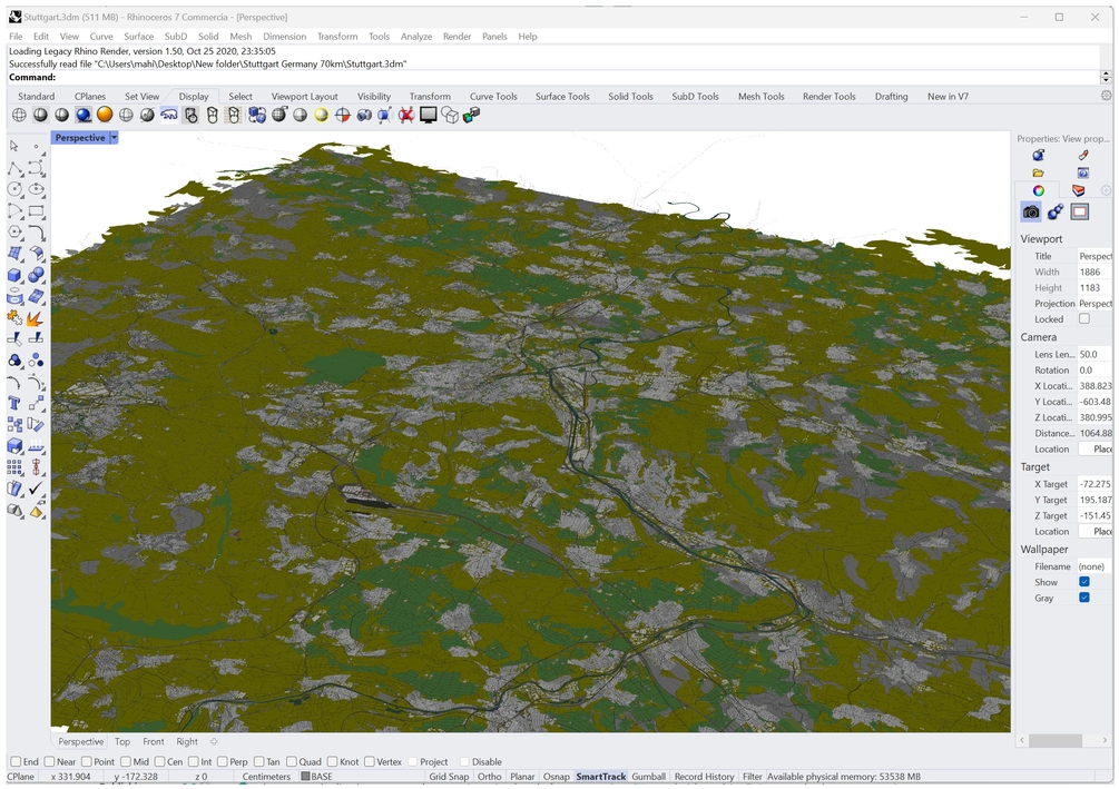 Accurate 3D city model and its surrounding area based on GIS data Year 2023