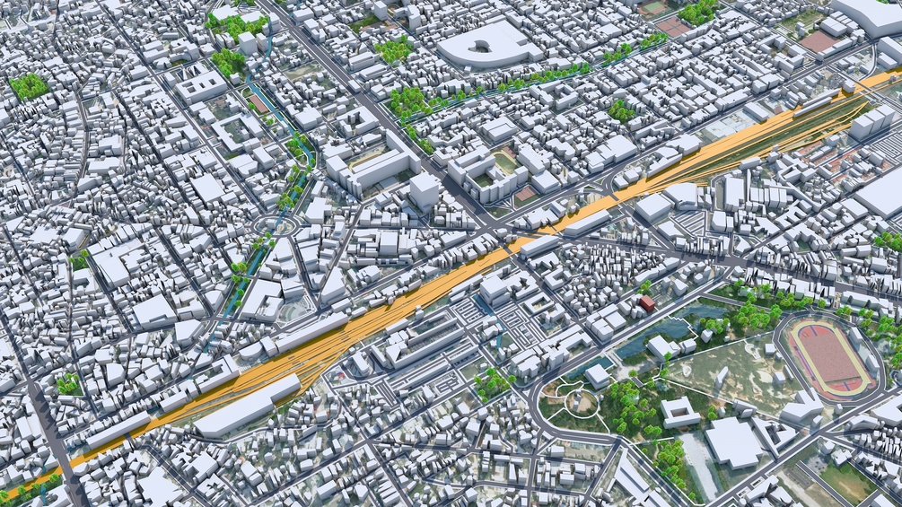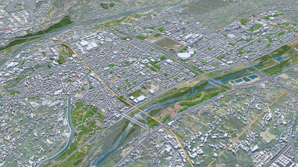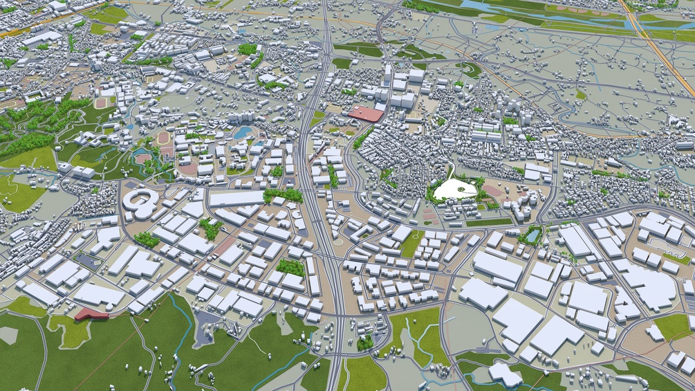 Accurate 3D city model and its surrounding area based on GIS data Year 2022