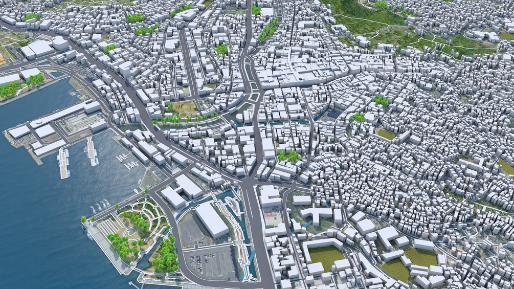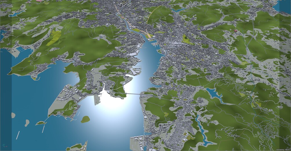 Accurate 3D city model and its surrounding area based on GIS data Year 2022