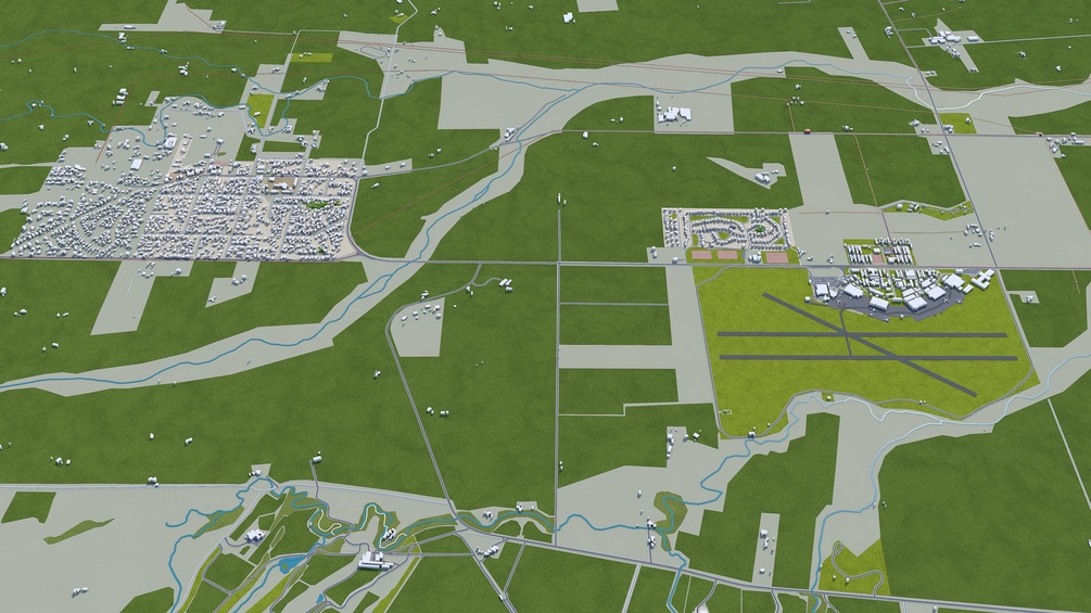 – Trees (mograph cloner), Water Effect and Stroked Roads are only in cinema 4d file