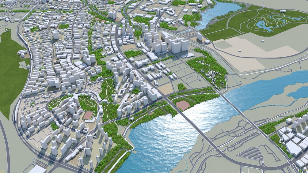 Accurate 3D city model and its surrounding area based on GIS data Year 2022
