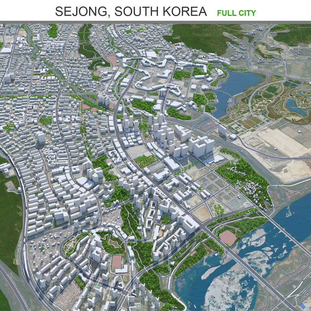 Sejong city south Korea 3d model 80km