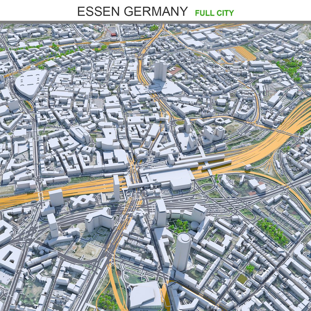 Essen City Germany 3D Model 40km
