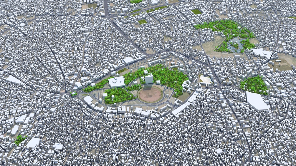 Accurate 3D city model and its surrounding area based on GIS data Year 2023