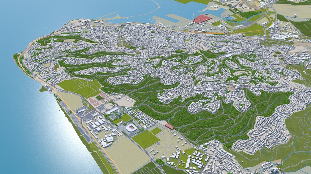 Haifa, Israel city 3d model 20km