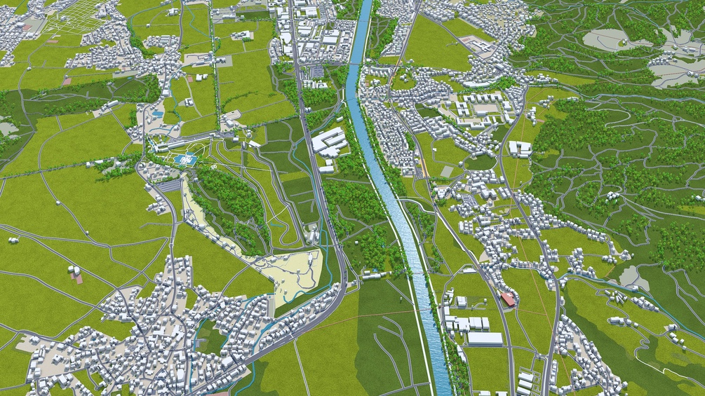 Accurate 3D city model and its surrounding area based on GIS data Year 2023