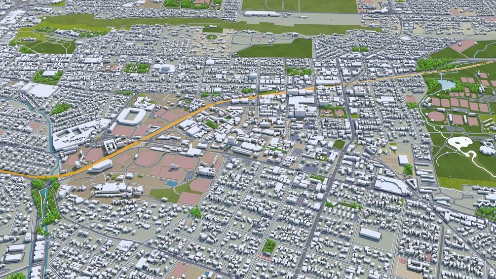 Accurate 3D city model and its surrounding area based on GIS data Year 2022
